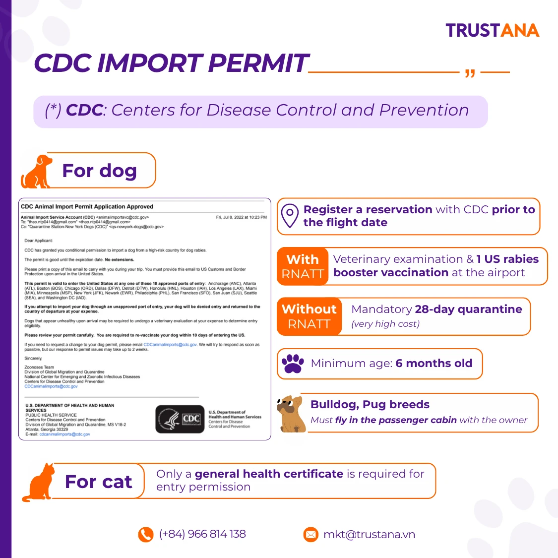 🐾 For Cats: Cats are not subject to CDC rabies import regulations.