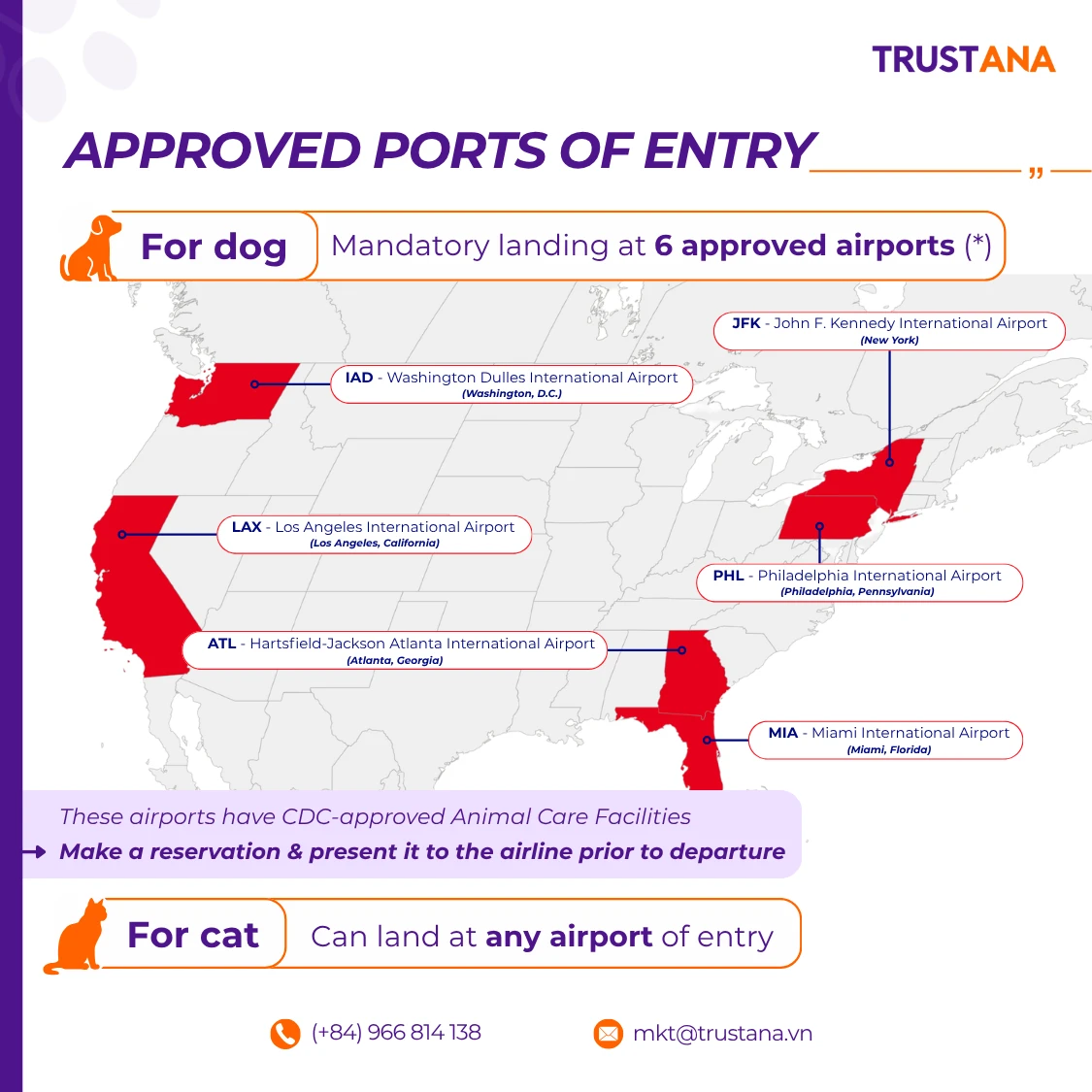 🐾 For Cats: Cats may enter through any U.S. airport.